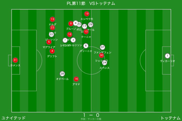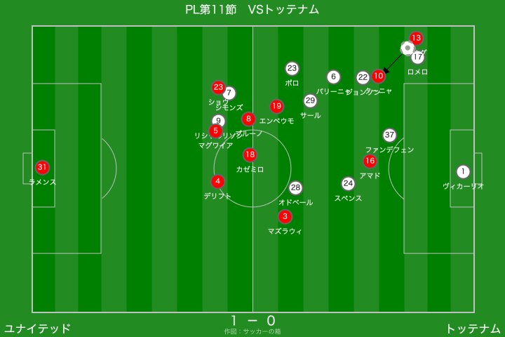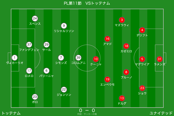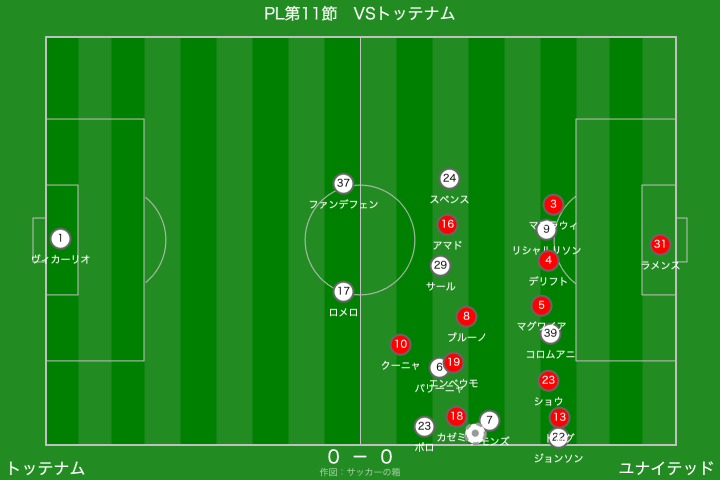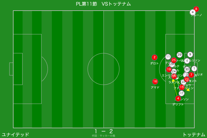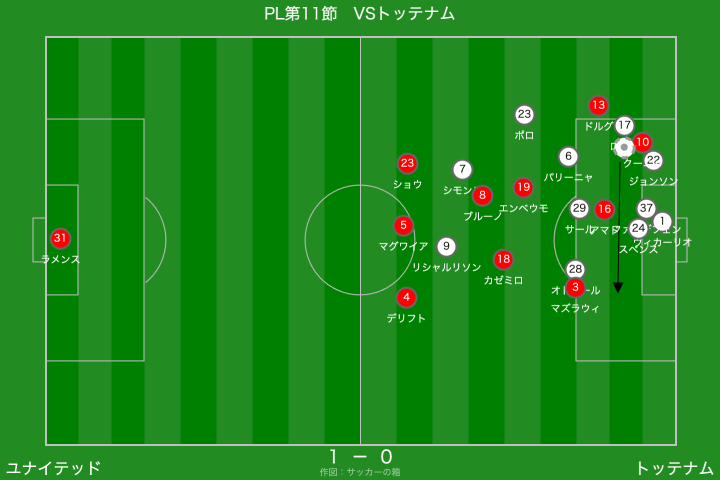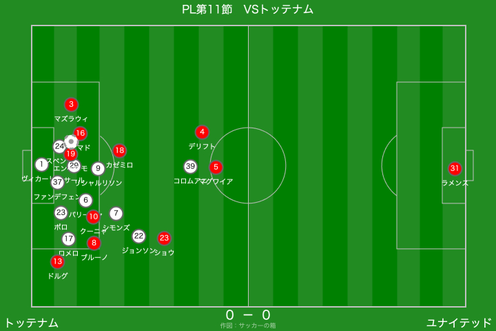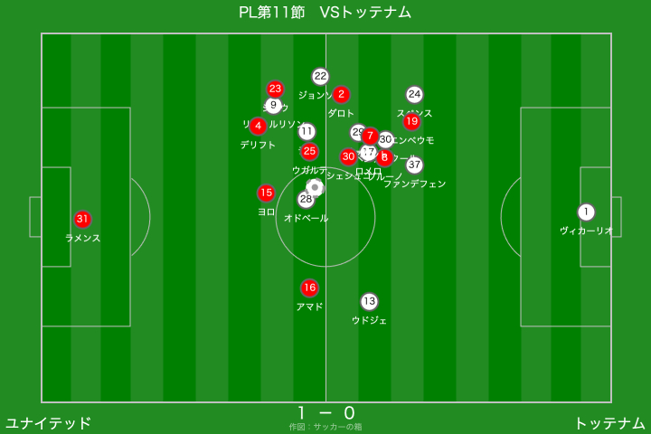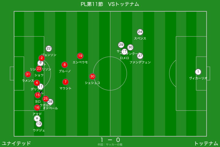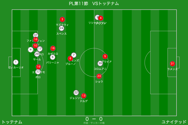 一方のトッテナムは、右サイドからのクロスを軸に攻撃を組み立ててきましたが、クロスの精度を欠く場面が多く、ユナイテッドとしては救われる場面が目立ちましたね。
