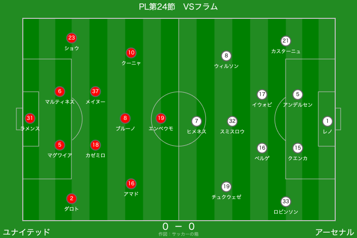 前節のアーセナル戦からの変更点は、負傷離脱となったドルグに代えてクーニャが入ったのみ。非常に妥当なメンバー変更だったと思います。