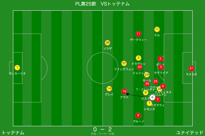 トッテナムは早い段階で勝ち点1を狙う戦いにシフトチェンジし、ユナイテッドとしては、引いてくる相手に対してボール保持の時間が長くなる、やや苦手な展開になりそうな予感もありました。