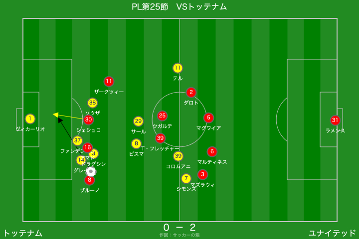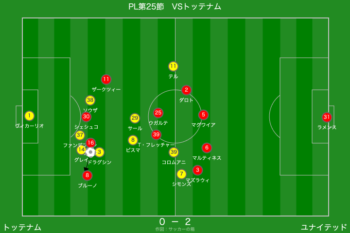 全体としてはユナイテッドが主導権を握る展開でしたが、トッテナムに押し込まれる時間帯もあり、オープンな立ち上がりだった印象です。